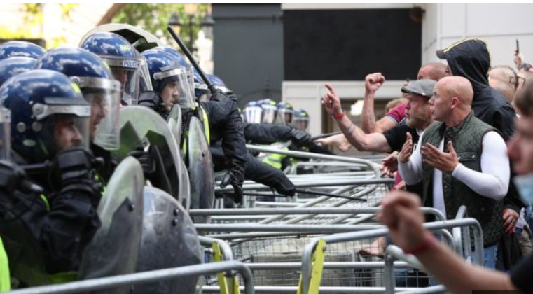当地时间13日,在伦敦及英国其他各地再次暴发反种族主义的示威游行,在伦敦市中心,有示威者和警察发生激烈冲突。