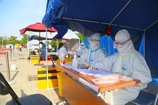 在全区各个核酸检测采样点