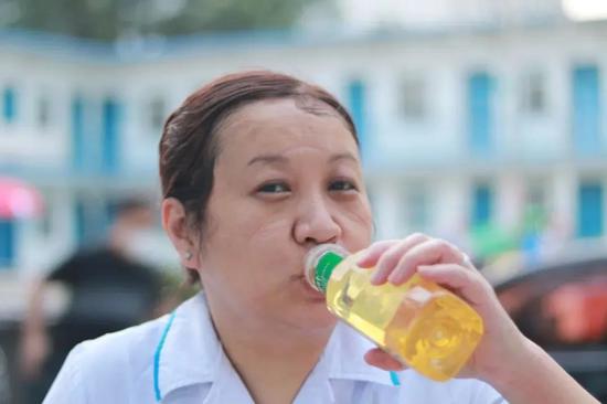 看着高温下穿着厚厚防护服的医务人员