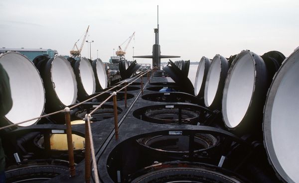 资料图片:美海军俄亥俄级核潜艇开启“三叉戟”潜射弹道导弹发射舱盖。(美海军官网)