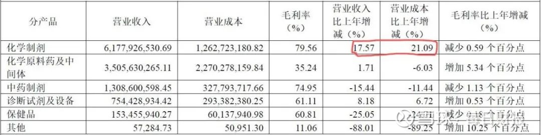 但在健康元营业收入、净利润实现双增长的背后,占据公司营业收入半壁江山的“化学制剂”的增速不及营业成本,这也间接导致了公司部分产品的毛利率出现下滑趋势。