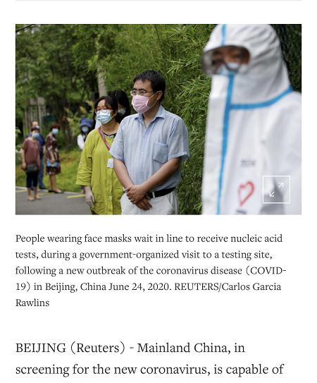 自6月11日新发地疫情发生后,北京迅速加大核酸检测力度。6月24日,多个户外核酸采样工作舱正式启用。来自路透社、法新社、美国有线电视新闻网、俄罗斯全国广播电视公司、东京广播公司等15家境外主流媒体走进检测点,对北京检测情况做了报道。