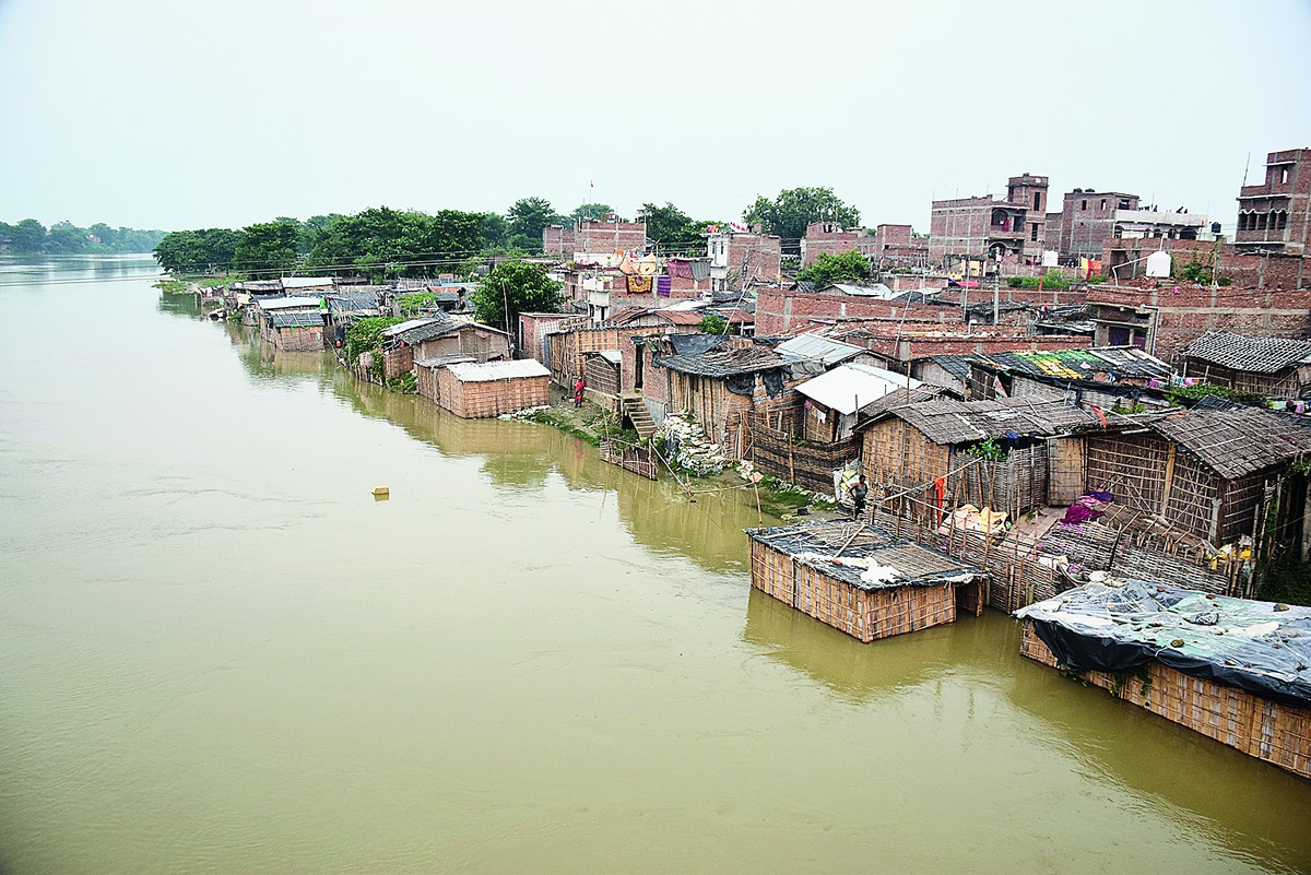 印度多地出现洪灾 比哈尔邦多处河流超警