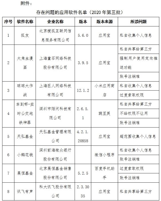 中新网7月24日电 工信部网站24日通报侵害用户权益行为的APP(2020年第三批)。通报指出,工信部近期组织第三方检测机构对手机应用软件进行检查,督促存在问题的企业进行整改。截至目前,尚有58款APP未完成整改。工信部要求,上述APP应在7月30日前完成整改落实工作,逾期不整改的,工信部将依法依规组织开展相关处置工作。