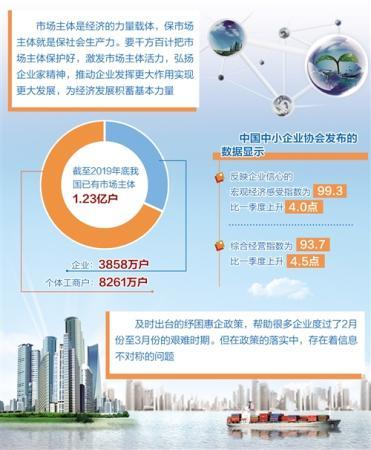 到2019年底,我国已有市场主体1.23亿户,其中企业3858万户,个体工商户8261万户。这些市场主体是我国经济活动的主要参与者、就业机会的主要提供者、技术进步的主要推动者,在国家发展中发挥着十分重要的作用。