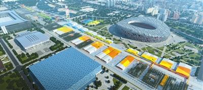 2020年服贸会场馆设施保障组工作人员祁航介绍,室外临时场馆南起国家体育场南路、北至科荟南路,全长1.9公里。整个区域以国家体育场北路和大屯路为界划分为南区、中区和北区。自南向北安排文化服务、冬季运动、金融服务、体育服务、服务机器人、教育服务、5G通信服务等7个室外专题展区;另外根据展会要求,安排安检、注册、餐饮等配套服务点。