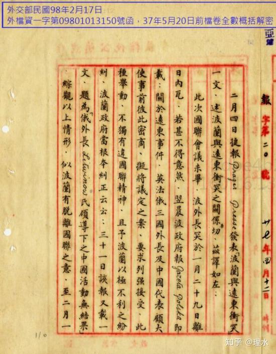 于是在2月3日南京大屠杀血迹未干之际,在国联理事会中日问题决议时,波兰代表为日本“仗义执言”,以手续问题为借口成为唯二投弃权票的国家。
