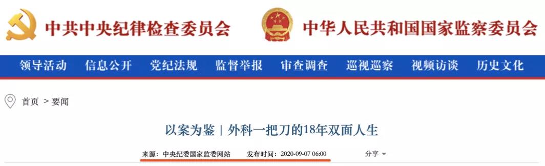 9月7日,中央纪委国家监委发布《外科一把刀的18年双面人生》文章,内容指出,一些代理商给一线医生送回扣,为了让医生多使用自己提供的耗材,无论是在药品、器械采购,还是医院工程建设上,医院相关人员提供供应权,并收受好处费。