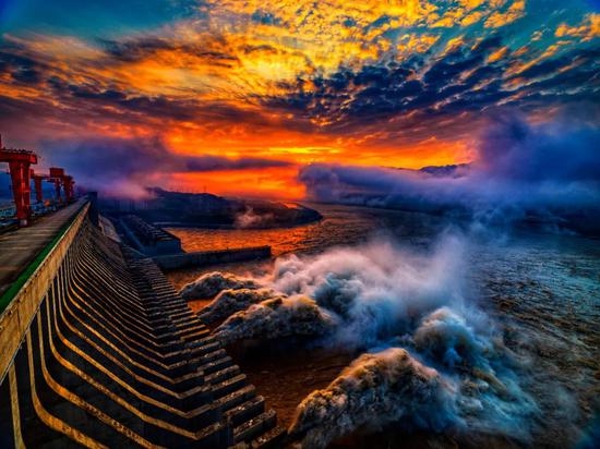 8月22日,三峡大坝泄洪场景。摄影:黄正平