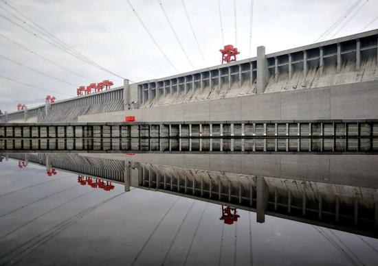 三峡枢纽工程拦蓄上游来水。摄影:汤伟