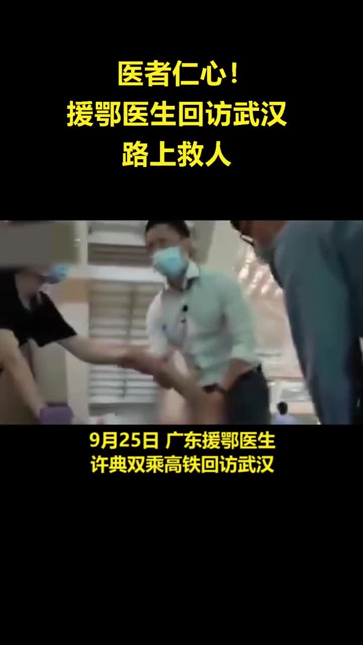 9月25日,广东援鄂医生、暨南大学附属第一医院神经外科专家许典双乘高铁回访武汉时,列车上一乘客突发疾病,许典双立即前往施救。目前,病人已转运至医院进一步救治。