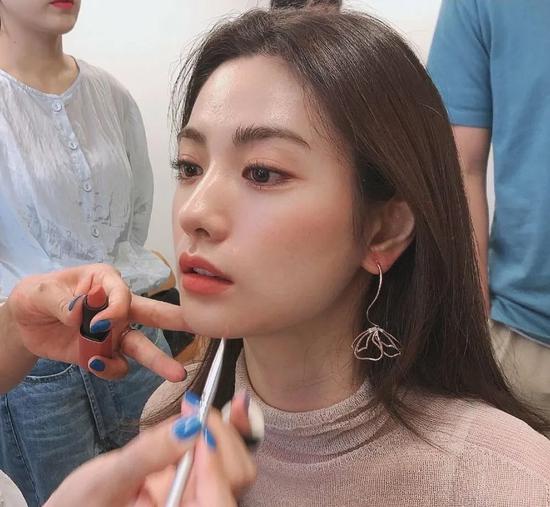 靠美貌出圈,靠实力站稳脚跟的林珍娜❤️了。而让美貌成功出圈的应该就是这张化妆后台照了。