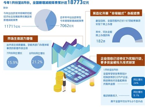 前8月新增减税降费近1.9万亿元—— 减税红利直达市场主体 经济日报·中国经济网记者 董碧娟