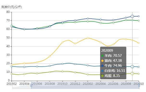 9月份,食品价格同比上涨7.9%,涨幅环比回落3.3个百分点,影响CPI上涨约1.69个百分点。其中,猪肉价格同比上涨25.5%,涨幅比上月大幅回落27.1个百分点。