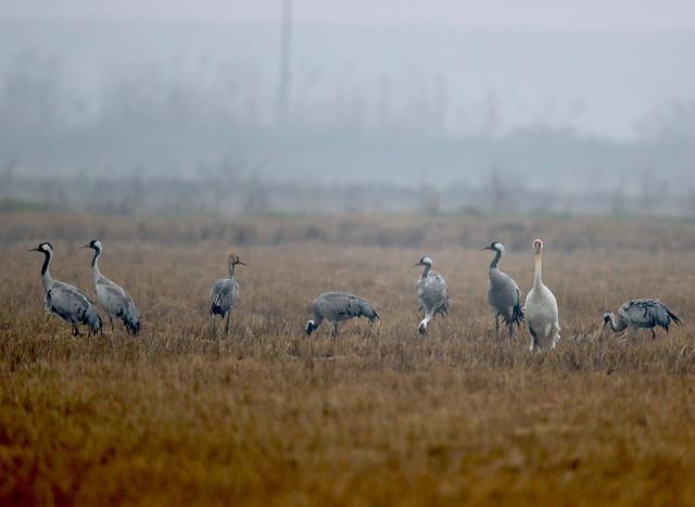 白鹤是国家一级重点保护动物,被誉为鸟类的“活化石”,全球只有不到4000只,其中98%每年都会到鄱阳湖越冬。白鹤在中国传统文化中也只有一席之地,象征健康长寿、吉祥如意。