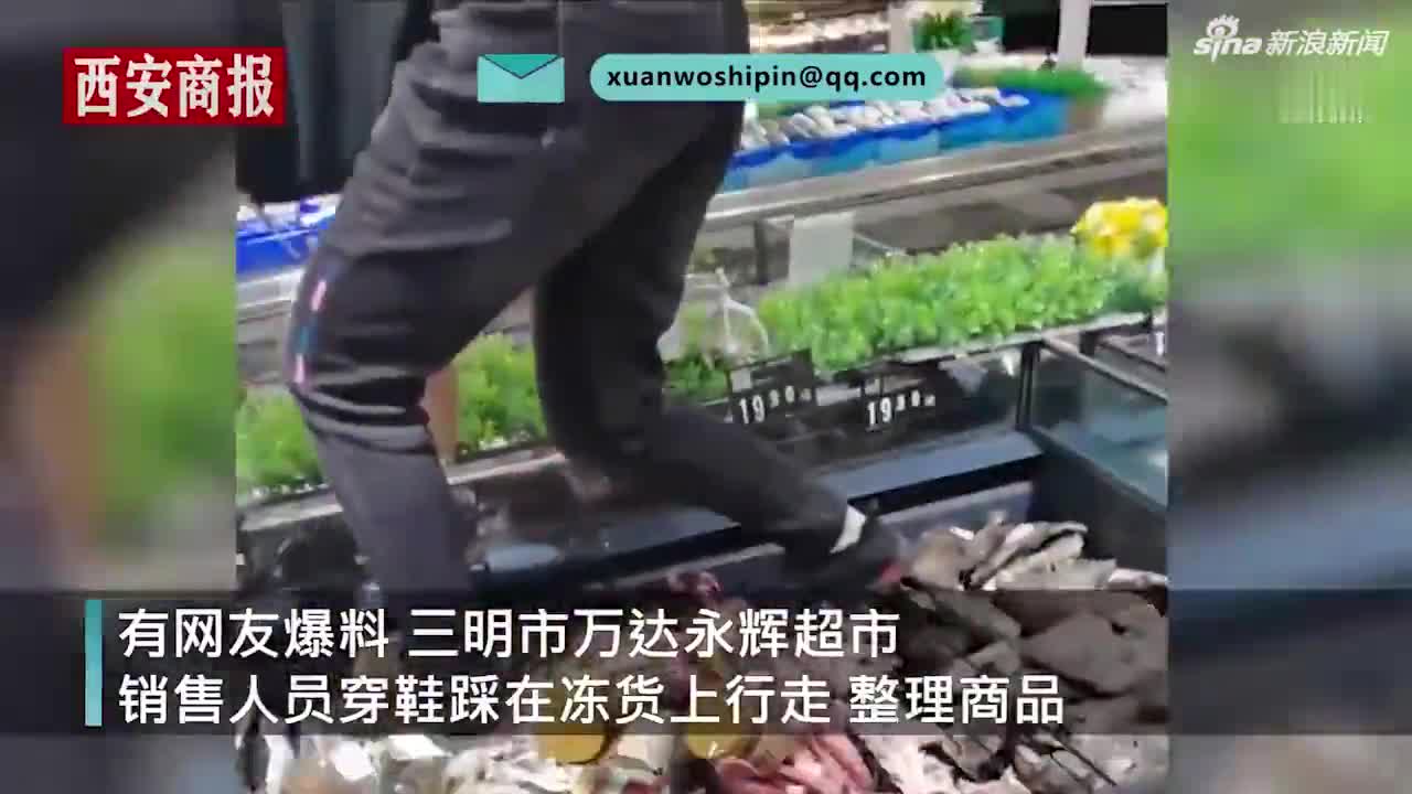 @漩涡视频10月31日消息,10月30日,福建三明。有网友拍到三明市万达永辉超市工作人员在整理商品时脚踩在冷冻鱼虾上行走。视频中,该工作人员先是坐在食品冷冻柜上,继而起身,直接穿鞋脚踩在冷冻鱼虾上整理商品。对此,涉事超市表示:此行为员工守则不允许,具体情况不便透露。
