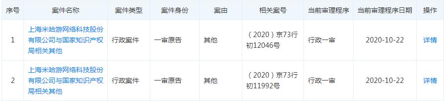 值得玩味的是,天眼查APP数据显示,米哈游近期身负两起与国家知识产权局相关的行政案件,均为一审原告。根据公开报道,此前,腾讯等企业也有将国家知识产权局上告法庭的先例,这些案件均涉及商标或专利纠纷。