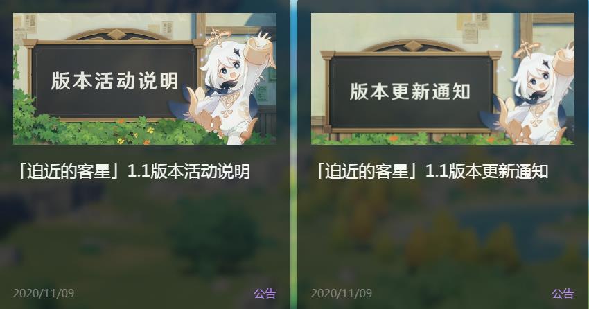 对此,11月9日,《原神》发布更新通知,“迫近的客星”1.1版本将于11月11日11点上线。此次更新后,《原神》将在角色、武器、剧情、活动、系统等方面新增一系列内容。
