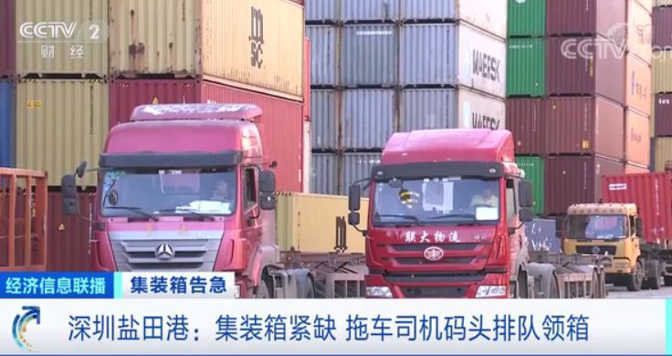 在盐田港码头的集装箱堆场,记者观察到现在出现了拖车司机排队领箱的场景。近期由于境外疫情持续,集装箱流转速度放慢,我国短暂地出现了缺箱的情况,前来领箱的拖车司机有时候甚至会无功而返。