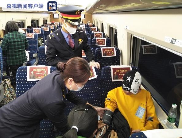 11月28日15:30左右,G1535咸宁回昆明的高铁上,4号车厢一名男性乘客突发抽搐,3号车厢来自云南医疗队的医生听到广播迅速赶往救治。