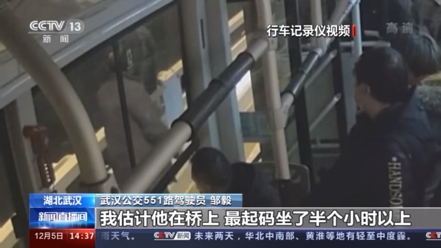 武汉公交551路驾驶员 邹毅:走过去之后,我发现他对我好像没什么感觉,等我走到估计离他还有2米左右的时候,我迅速两步走上去,我先抓住了他的左手,他的手已经冰的,我摸上去我都感觉刺痛,我估计他在桥上坐了半个小时以上,我就把他往下拽,我说你先下来。