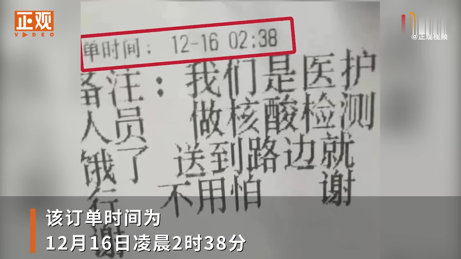 “我们是医护人员,做核酸检测饿了送到路边就行,不用怕,谢谢”时间显示凌晨2点38分