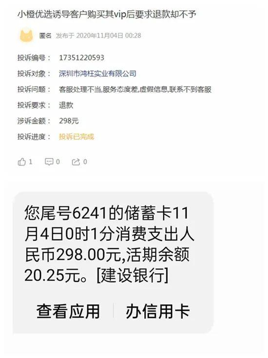 在黑猫投诉等平台,有网友反映,在小橙优选、喵享借、借款喵等平台上,注册后诱导用户购买VIP服务,但扣除几百元的VIP费用后,借贷也迟迟难下发。