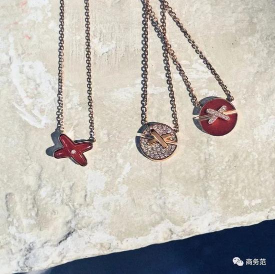 尚美Jeux De Liens系列也是尤其适合作为新年开运珠宝来入手,标志性交叉连接的设计,很容易让人联想到连接缘分与好运的寓意,不管是红玉髓款还是镶钻款都是喜气满满。