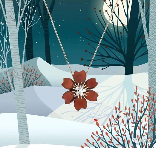 经典系列之外,梵克雅宝的Rose de Noël也推出了红色珠宝,以圣诞玫瑰为设计灵感,采用红玉髓和钻石创作出栩栩如生的花朵形状,浪漫又吸睛~