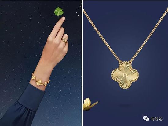红玉髓材质的Alhambra珠宝是他家的畅销款,红色深邃细腻,和黄金底座搭配起来很有经典隽永的美感,新年还增添一份喜气。
