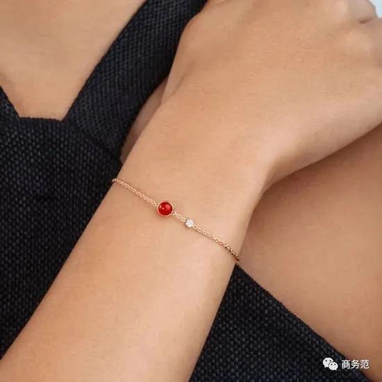 除了手镯款式,时来运转系列也有手链款,是他家入门级珠宝的好选,单颗红玉髓搭配美钻,加上可旋转的设计,也是玩味十足。