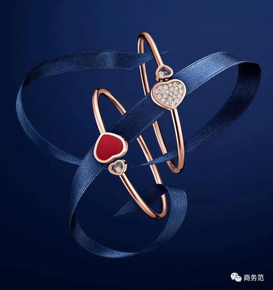 萧邦的经典款式Happy Hearts尤其适合新年想要招桃花的小伙伴,标志性的心形设计,加上玫瑰金与钻石的点缀,凸显浓浓爱意。