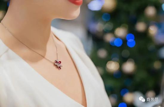 想要新年氛围浓郁一些的小伙伴,也可以pick红宝石款式的。一抹红在颈间,十分点睛。上身存在感也是刚刚好,而且特别日常百搭,职场佩戴也妥妥的。