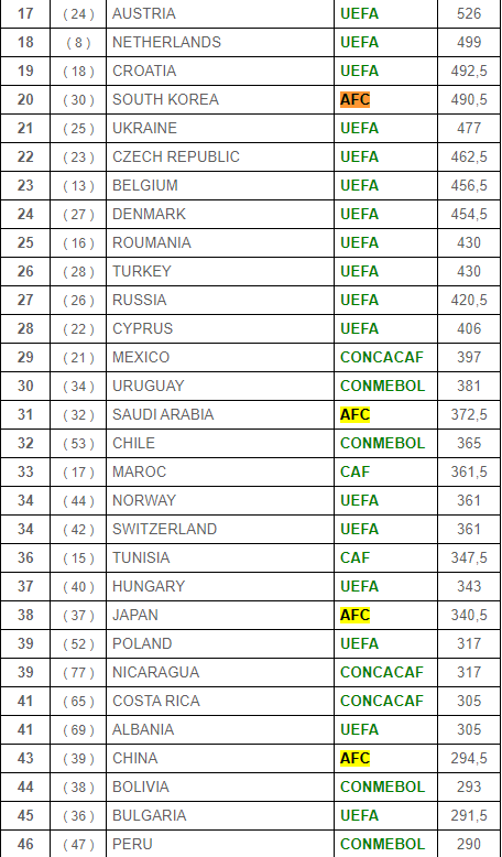 世界联赛排名中超第43位 亚洲范围内也不是第一