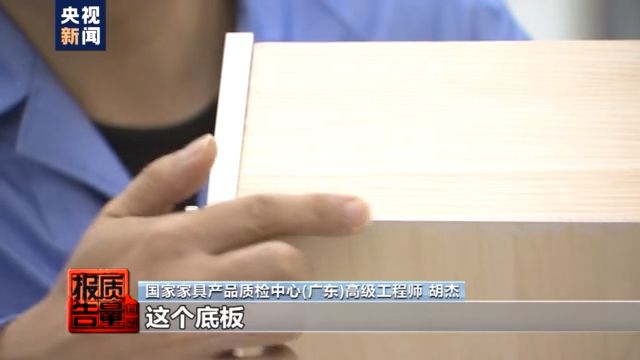 国家家具产品质量监督检验中心(广东)高级工程师 胡杰:我们看一下,这个样品,这抽屉的侧板,这个底板进行了封边的处理。