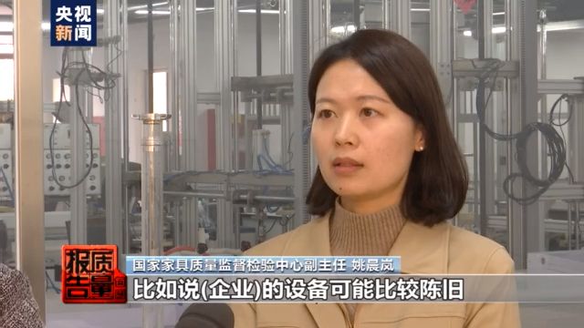 国家家具质量监督检验中心副主任 姚晨岚:我们发现有些企业它主观上想把这个产品质量做好,但是他(客观上)受限于他的生产设备、人员能力以及质量管理制度等因素,他难以保证他产品的质量水平和质量稳定性。