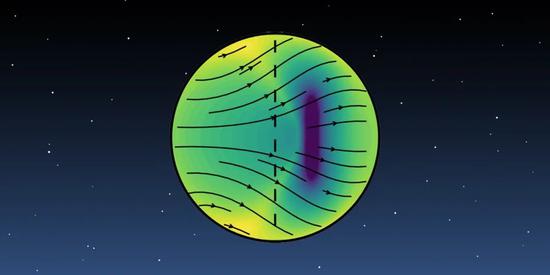 这种不对称增长还与另一个重要的问题息息相关,那就是地球磁场。在外核和地幔中,都有对流发生。铁在内核的凝固过程会释放热量,这能造成外核的缓慢沸腾;而在地幔中,随着较热的岩石向上移动,热量被从地球核心带到地表。液态的铁外核中所发生的剧烈沸腾,导致了地球磁场的产生。