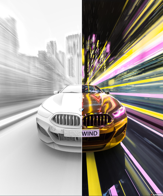 或是做电脑的图,也离不开这种炫酷风。看着我很想来一套带回家打游戏,但可惜这些作品都不是商业广告,都是他自己练手玩儿的。