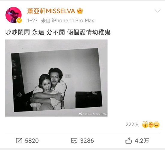 最近,萧亚轩在社交平台上发文:双方都有自己的想法,女方还有自己的梦想。 彼此都能找到自己想要的方向,谢谢你的一切,再见。 字里行间,仿佛在宣布和小男友黄皓分手了。