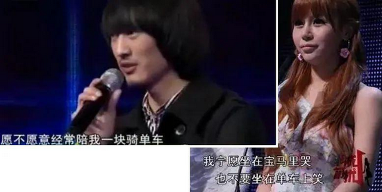 是“宁愿坐在宝马车上哭,也不愿意坐在自行车上笑。”