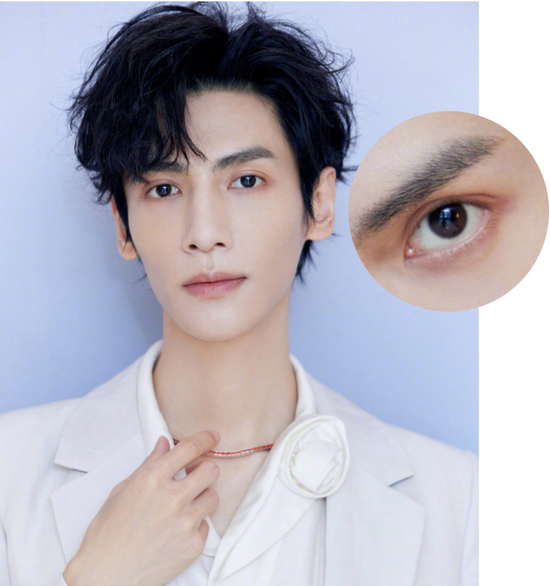 在生活中,罗云熙还会巧用眼妆来加分,他通常会选用大地色系眼影,加深和拉长眼尾,让眼睛深邃而有神。