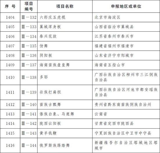 第五批国家级非物质文化遗产代表性项目名录