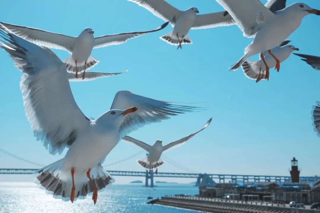 顺着广场往海边走,会看到成群的海鸥,十分可爱。