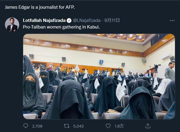11日阿富汗女性身着黑袍演讲游行的照片,在推特上引起热议