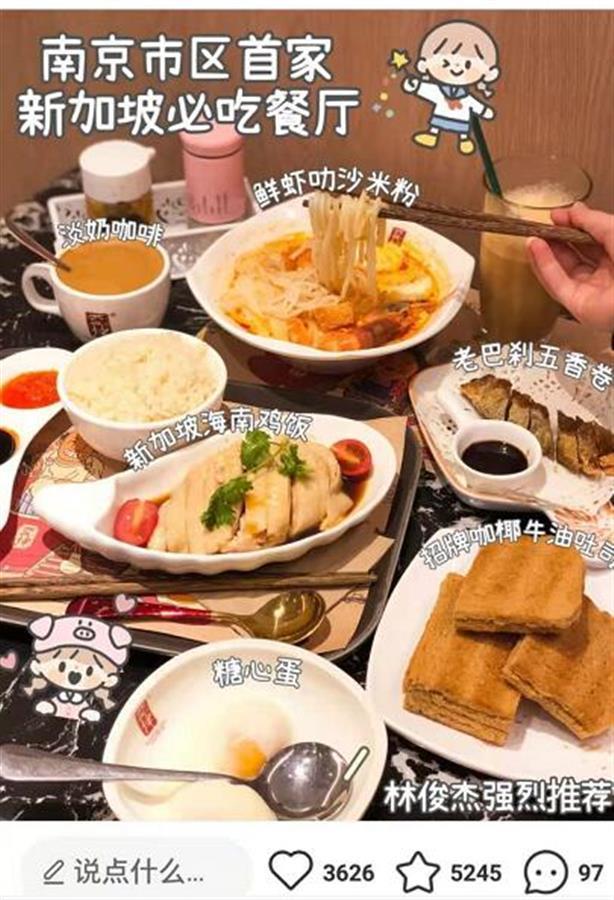 在多个社交平台上,极目新闻记者注意到,亚坤被推荐成为网红餐厅。多名美食博主称,亚坤为火遍新加坡的美食,已有70多年的历史,据说“去新加坡必做的事情”之一就是要去亚坤吃吐司和养生蛋。