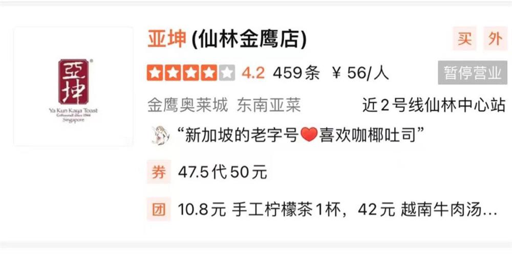 10月20日上午,极目新闻记者多次致电涉事的亚坤南京仙林金鹰店,但无人接听电话。记者在大众点评看到,该门店被标为暂停营业。到了中午,记者再次搜索发现,大众点评已经不再显示这家门店。