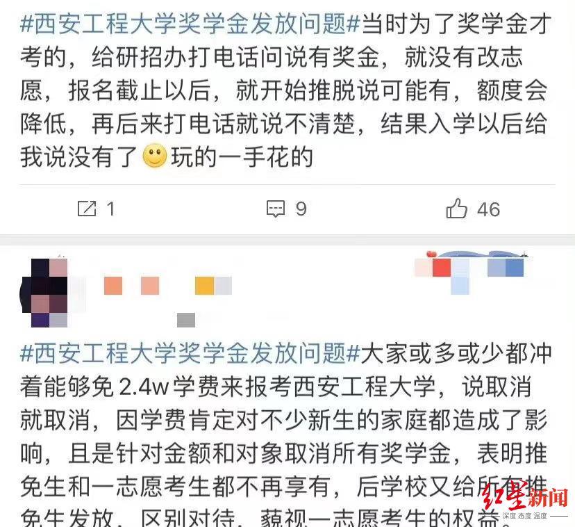 11月4日,西安工程大学研招办一位工作人员回应红星新闻记者称,奖学金条例在2021年9月进行了调整,之后就不再向新生发放,保研生是前一年录取的,所以有奖学金。
