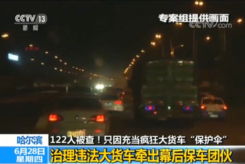 2017年10月23日,哈尔滨还成立查处“疯狂大货车”问题的专案组,历时7个多月,排查出哈尔滨市公安交警巡逻大队以及道里、道外、南岗、香坊、平房、阿城等公安交警大队近百名交警充当“保护伞”的违纪违法问题线索。