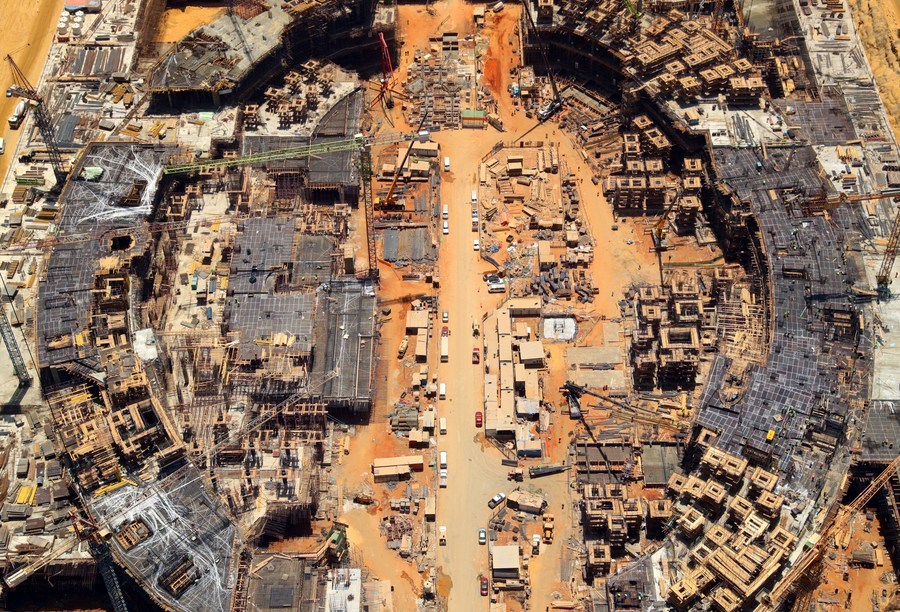 埃及新行政首都建设项目中,核心区域中央商务区项目由中国建筑集团有限公司开罗分公司承建,计划在约50.5万平方米的土地上建成写字楼、酒店、公寓等20个高层建筑单体及配套市政设施,总建筑面积约170万平方米。截至今年5月21日,项目大部分高层主体结构施工接近尾声,已有10栋高层办公楼主体建筑封顶。