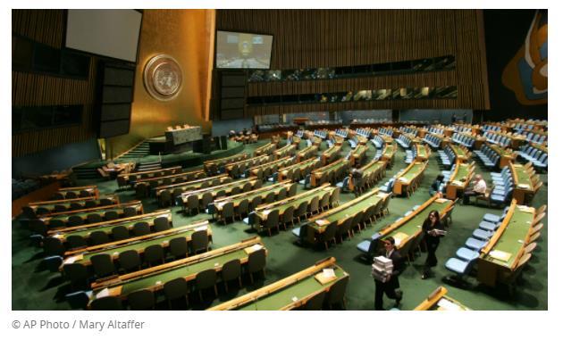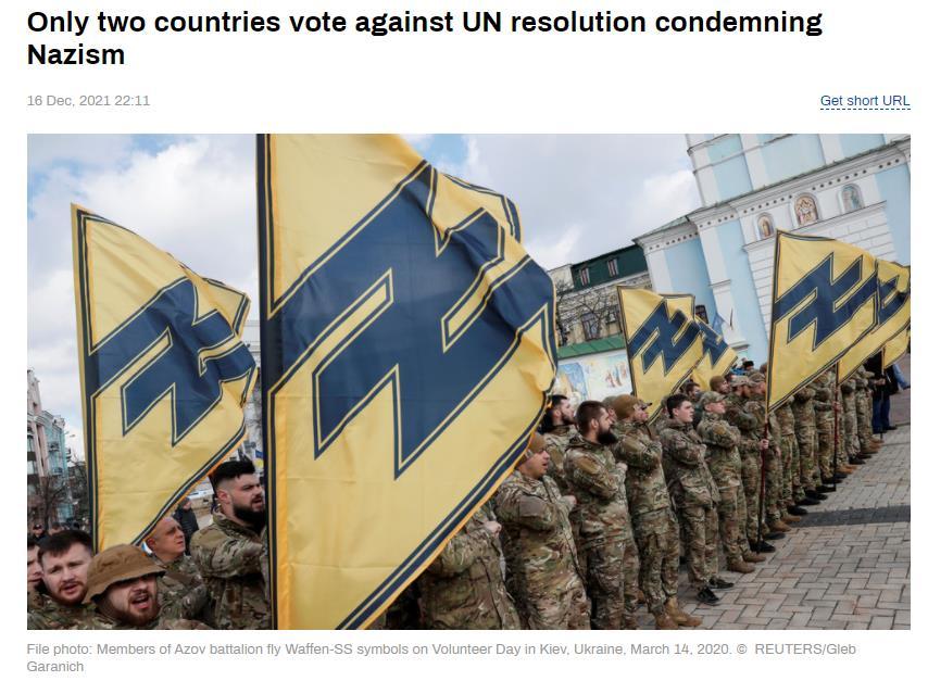据今日俄罗斯电视台(RT)16日报道,联合国大会在周四通过了一项谴责纳粹主义、新纳粹主义和一切形式种族主义的决议,该决议由俄罗斯和其他国家共同发起。但只有两个国家——美国和乌克兰投了反对票,还有49个国家(主要是美国的盟友)投了弃权票。